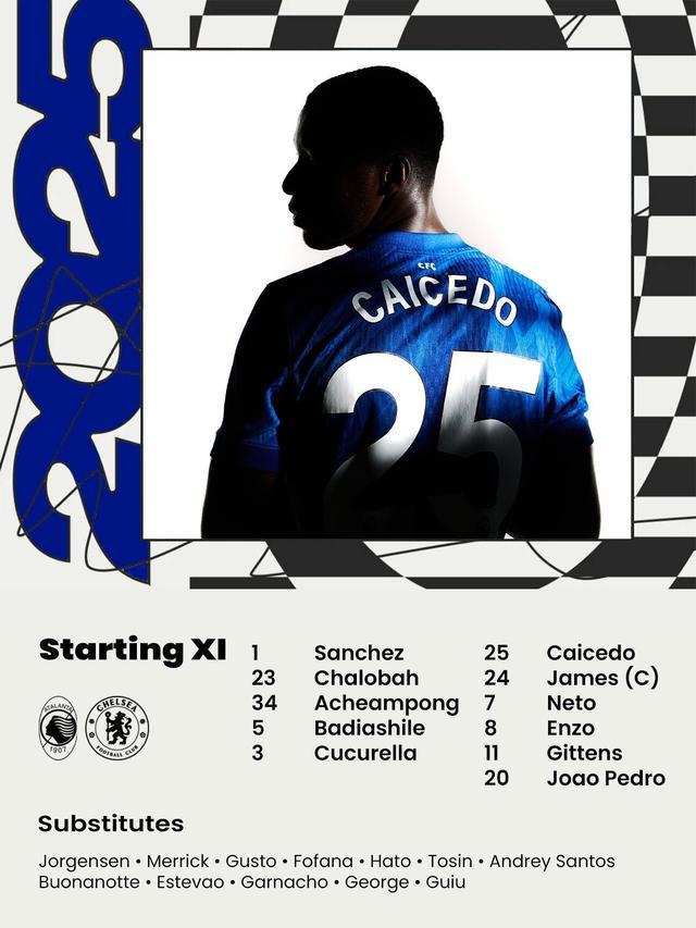 北京时间12月10日04:00,欧冠 联赛阶段 第6轮,亚特兰大主场迎战切尔西,赛前双方球队首发名单公布如下: