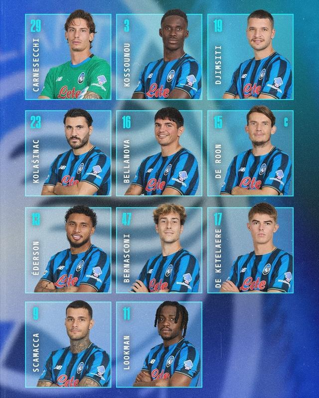 替补:4-希恩、6-尤纳斯-穆萨、8-帕萨利奇、10-拉扎尔-萨马尔季奇、42-斯卡尔维尼、44-布雷夏尼尼、57-斯波尔蒂耶洛、59-扎莱夫斯基、69-阿哈诺尔、70-丹尼尔-马尔蒂尼、77-扎帕科斯塔、90-尼古拉-克尔斯托维奇