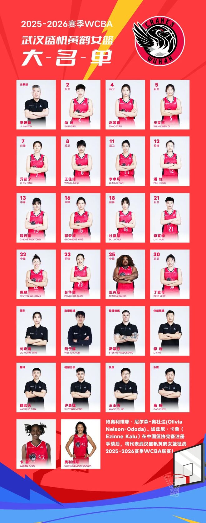 休赛期球队全力升级阵容:国手王佳琦加盟并任队长,统筹攻防;“建队元老”彭华倩回归,夯实阵容深度。外援方面,埃兹尼·卡鲁将携手佩顿·威廉姆斯、奥利维耶,组成“外援天团”助力冲绩。